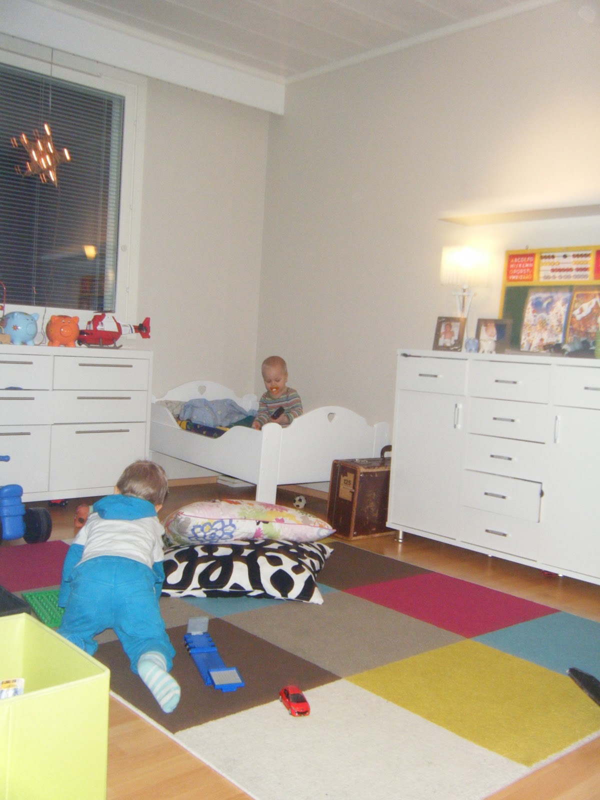 Ja kyl ny pokien kelpaa leikkiä uudessa huoneessa ja mamma ja isikin sai erittäin värikkään ja pirteen makkarin ala telkkarin <3